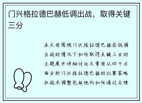 文章摘要:本文将详细分析尤文图斯在压力之下如何完成逆转取胜的过程。通过从战术调整、关键球员表现、心理素质的应对以及比赛节奏的控制四个方面展开分析,揭示出尤文图斯在困境中逆袭的原因。,我们将探讨尤文图斯的战术调整,如何在对手施压时进行有效的变阵以应对不同的局面。接着,分析关键球员在关键时刻的发挥,尤其是队内领军人物如何带领球队走出困境。然后,我们将重点讨论球队的心理素质,尤文图斯球员如何在压力下保持...